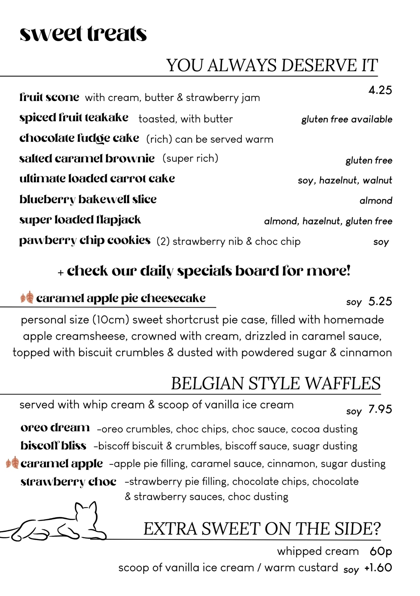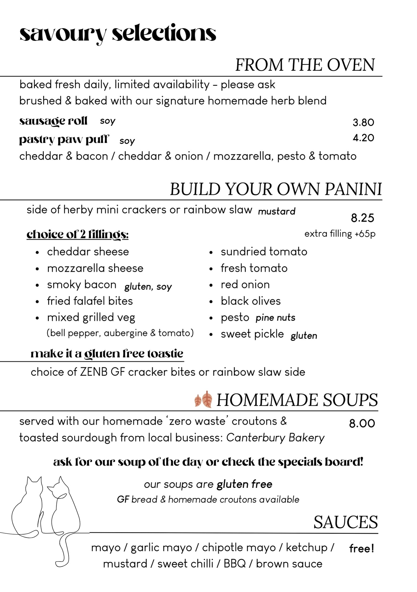 Our menu is paw-sitively delicious, and we still have all your favourites, so you won't be feline left out. Unlike humans, cats are obligate carnivores and cannot thrive on a vegan diet, so the only animal products you'll find here are in our cats' food bowls. We're not lion when we say that protecting our planet and all living beings is a top priority at Canterbury Tails.