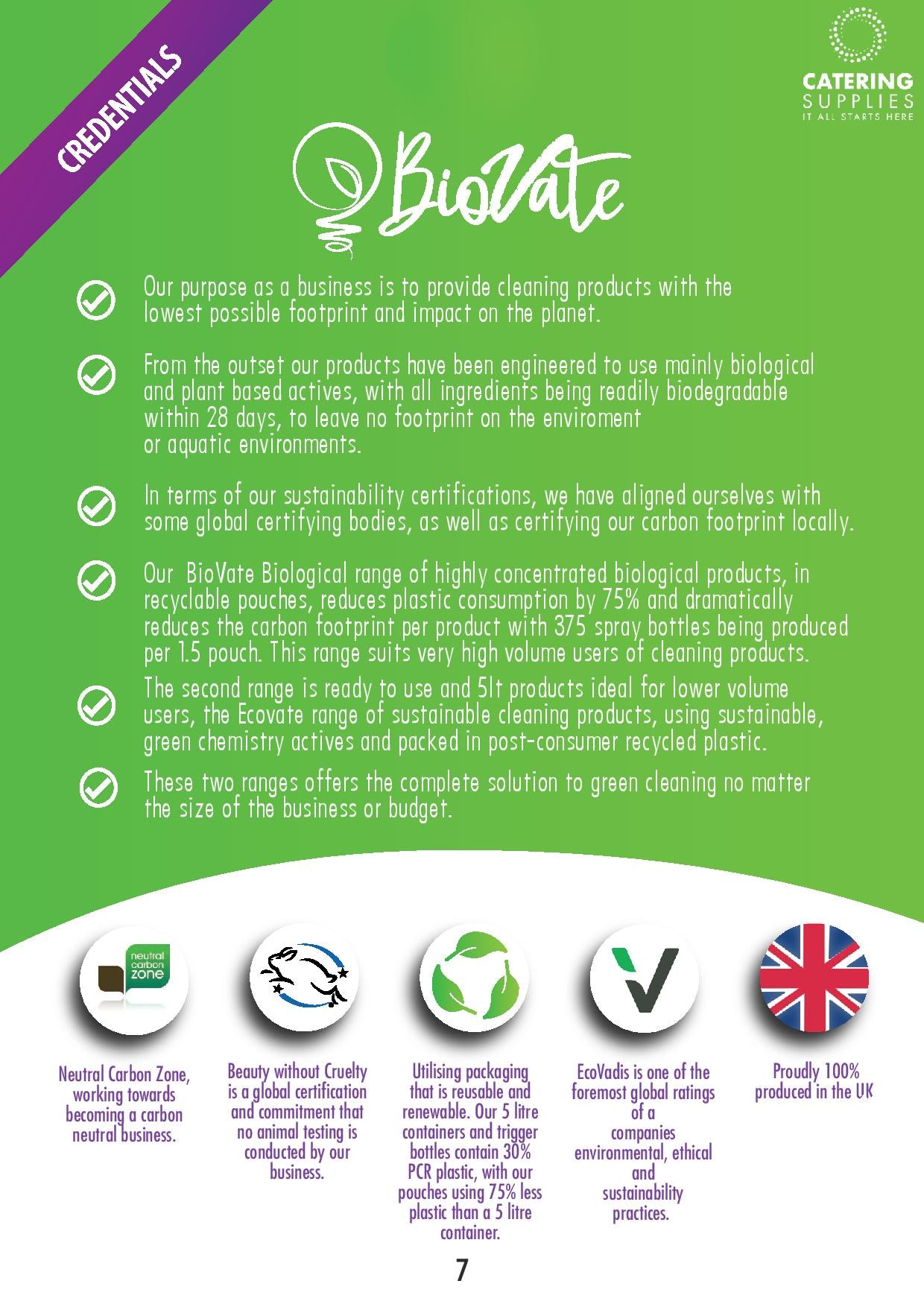 The team at BioVate Hygienics have pioneered the UK's migration to sustainable cleaning products for the past decade, using the power of nature's biological cleaning actives. We continue to lead the journey towards carbon neutral, sustainable cleaning by evolving both the liquid products and the way they are packaged by launching the industries next generation of biological cleaning products.