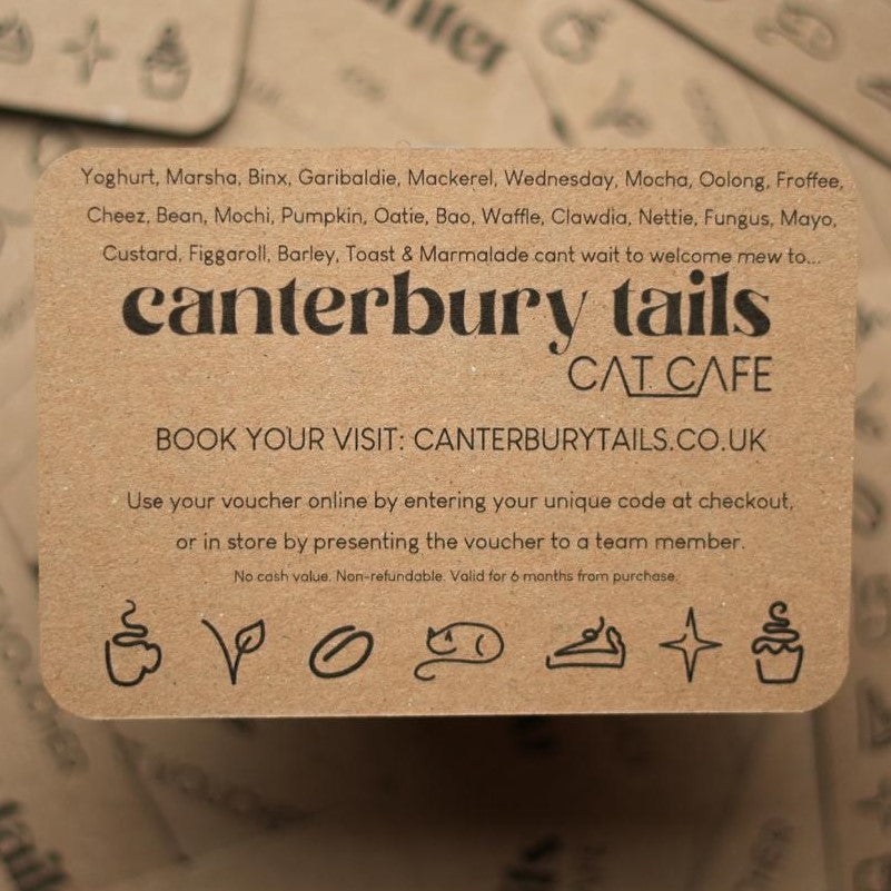 If purchasing more than one gift voucher to be posted, please ensure the correct quantity of postal add-ons are also purchased. For additional postal addresses within the same order, please email us after checkout at meow@canterurytails.co.uk